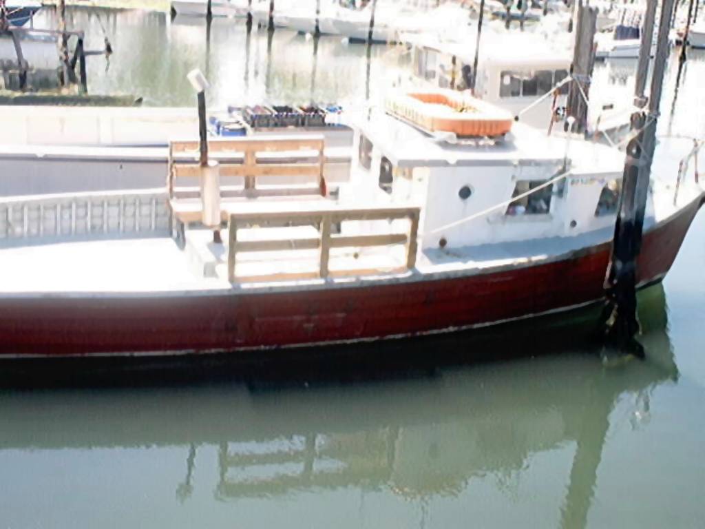 | I aquired the Pot Luck in on August 16th, 2001. She was sitting in a slip behind Bills Bait shop on the Shark River Inlet in NJ. She was floating, and her Lehman diesel started right up and ran well. Why exactly were they selling her, I will probably never know, but the price was right so money was exchanged for a title on the spot. At that time she was already outfitted (sort of) for diving. She had a Si Tex 106 fish finder, a Garmin 128 GPS and an older VHF for electronics. She also came with ground tackle and safety items such as life jackets, flares and a Boyant Ring . |